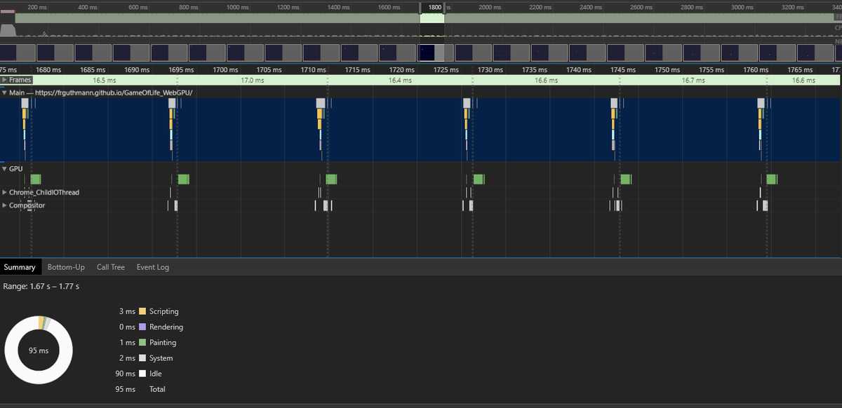 @WebGPU is surprisingly easy to use and profiling the page is pretty satisfying as well :).pic.twitter.com/F3ijzOhUex