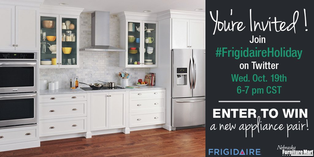 #TwitterParty Alert! Join@nfmtweets &@Frigidaire on 10/19 for the#FrigidaireHoliday party for a chance to win a new appliance pair!pic.twitter.com/BmxFZoH3av