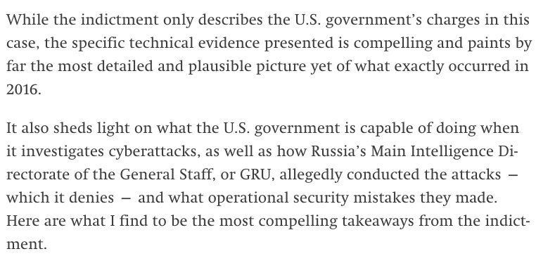@micahflee finds the technical details in Mueller’s indictment compelling and believable. That should move the needle for the doubters. It sure moved mine. https://interc.pt/2mqwQvF pic.twitter.com/y9emgnQpvr