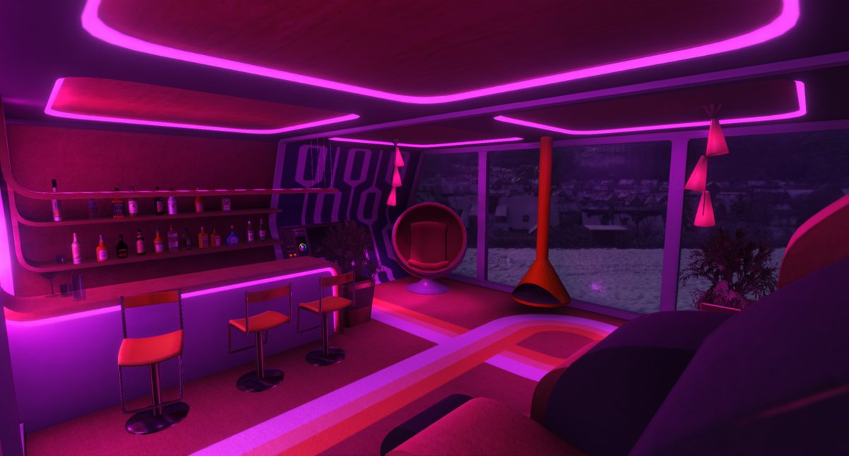 And now its mostly done! Cozy 60s mod inspired room for my home world in