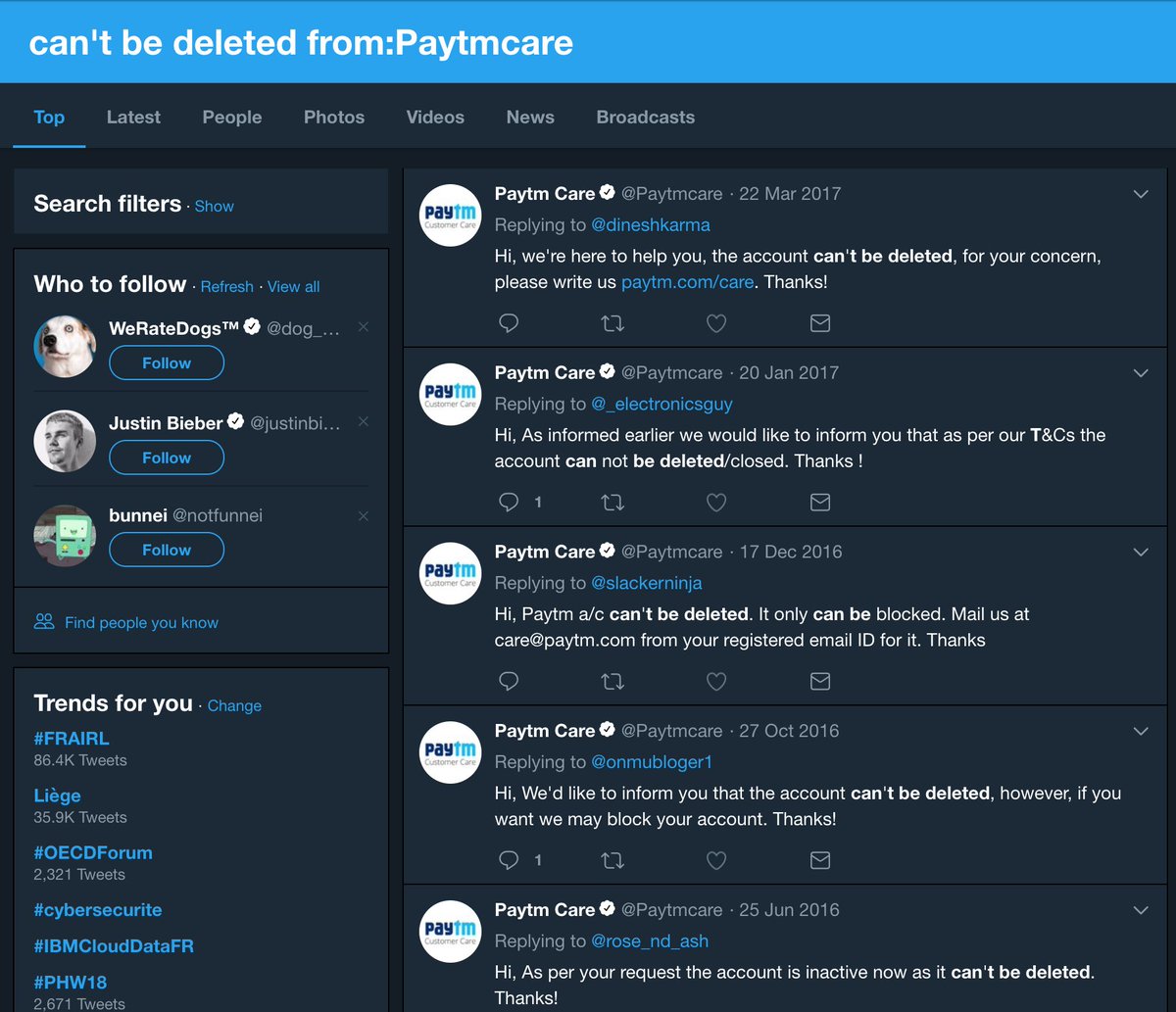 Another query: "can't be deleted from:Paytmcare"pic.twitter.com/lxJRgvrGDm