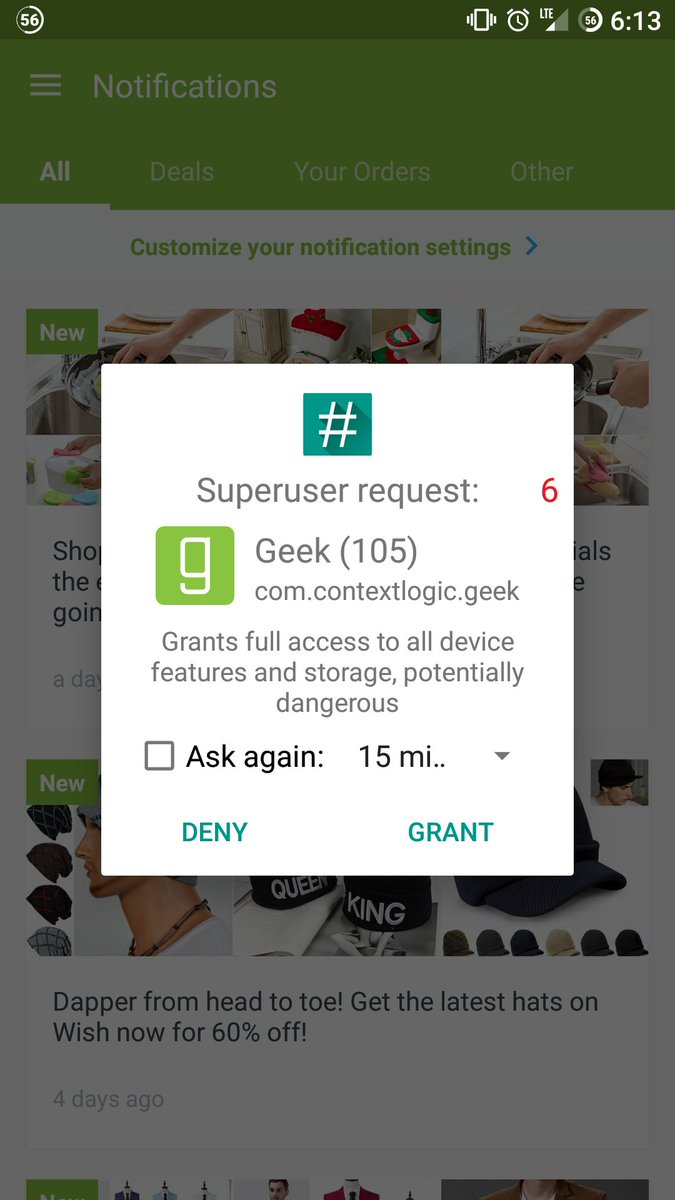 Geek app from Google Play with more than 10M installs requests root access. Not cool! This app is powered and developed by Wish Inc. with more than 100M installs.pic.twitter.com/kaQFeV938q