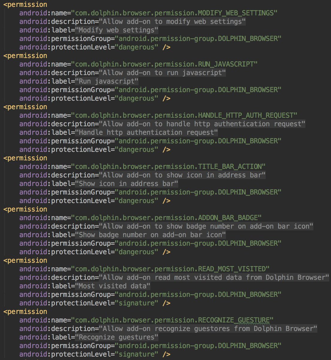 @DolphinBrowser implemented an interesting set of permissions...🤦‍♂️ ex: Allow add-on to listener webpage loads and read webpage information, Allow add-on to read history, Allow add-on to write history,...pic.twitter.com/VkrMADBdpA
