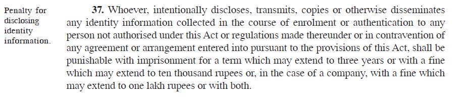 Multiple people asking the question: what is the problem if Aadhaar number is publicly available. Ans: It is illegal and can lead to 3 years of imprisonment as per Aadhaar act.pic.twitter.com/AGnodsKskm