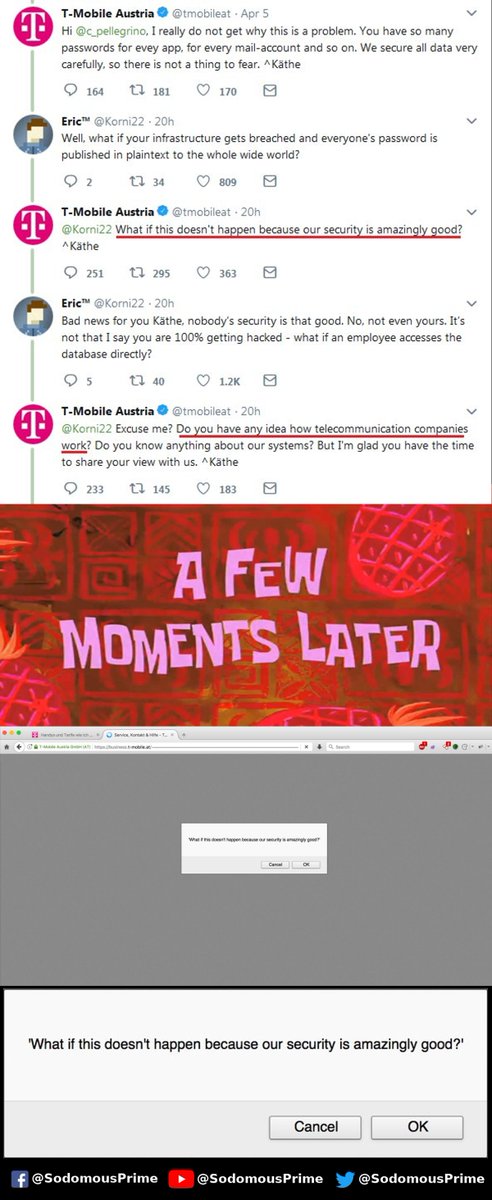 Unfortunately, this problem is not just about @tmobileat. I know the ISP's who also store the identifiers and passwords in cleartext and this database is accessible to all their technicians :/