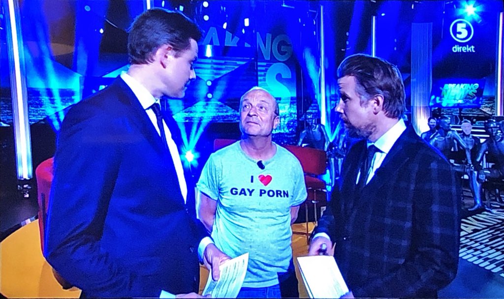 I used to work with TV on when I’m at the hostel, just to have a background noise. I just look at the screen 2s and see that. Ok, now I‘m curious, I want to understand why this guy is wearing this t-shirt on one of the biggest Swedish show.pic.twitter.com/FFUZ1voj8Q