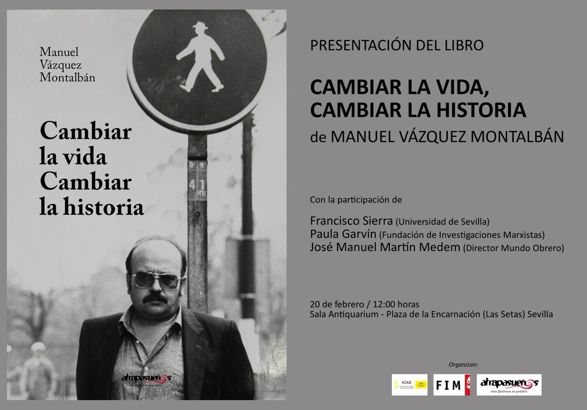 “Cambiar la vida, cambiar la historia”, el nuevo libro de Manuel Vázquez Montalbán q recoge sus artículos en prensa clandestina se presenta en Sevilla https://diario24.es/noticias/sevilla-capital/6908-cambiar-la-vida-cambiar-la-historia-el-nuevo-libro-de-manuel-vazquez-montalban-que-recoge-sus-articulos-en-prensa-clandestina-se-presenta-en-sevilla … @https://twitter.com/onda_sevilla Quien estuviera en