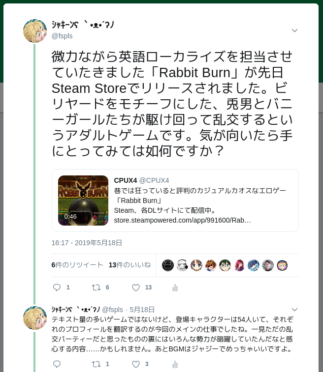Horiskoshi's statement on the Shiga Maruta name controversy. He didn't realize the connotations held by the name, is deeply sorry for causing pain in his fans, and will be changing the name going forwards. Good response imo.https://twitter.com/horikoshiko/status/1224295830389055488 …