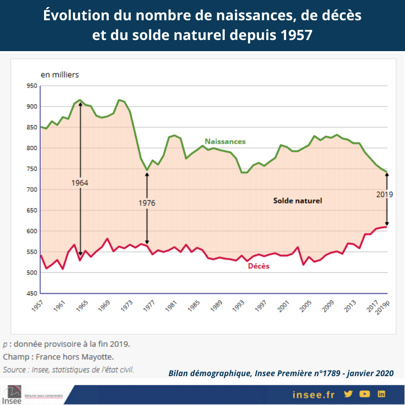 #bébés sont nés en France et 612 000 personnes sont décédées. Le solde naturel est historiquement bas#démographie#naissances#décès#dataviz