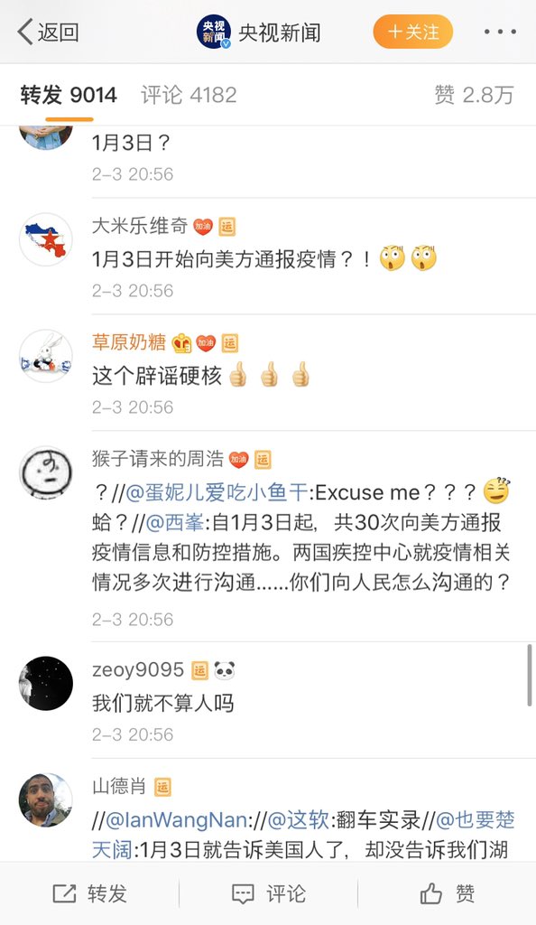 外交部为了喷美帝国主义没提供帮助,自己透露1月3号就在向美帝通报病毒信息了。 冤有头债有主,都知道仇家是谁了吧。