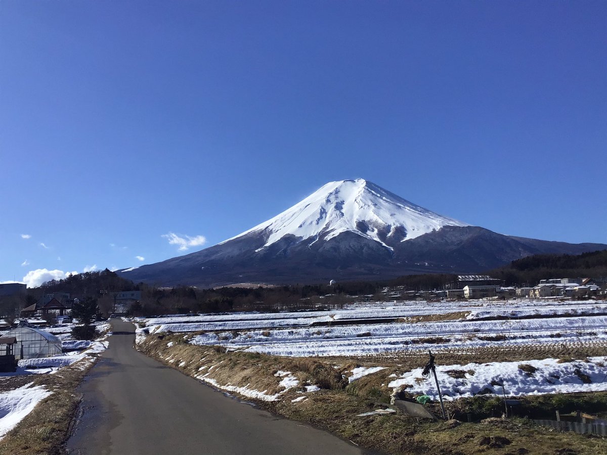 2月1日 山梨県富士吉田市農村公園付近からの富士山です。 朝からきれいな姿を魅せています。 市内の雪はだいぶ溶けましたが、富士スバルラインは、一合目下までの通行です。pic.twitter.com/qdmkoEH2wg