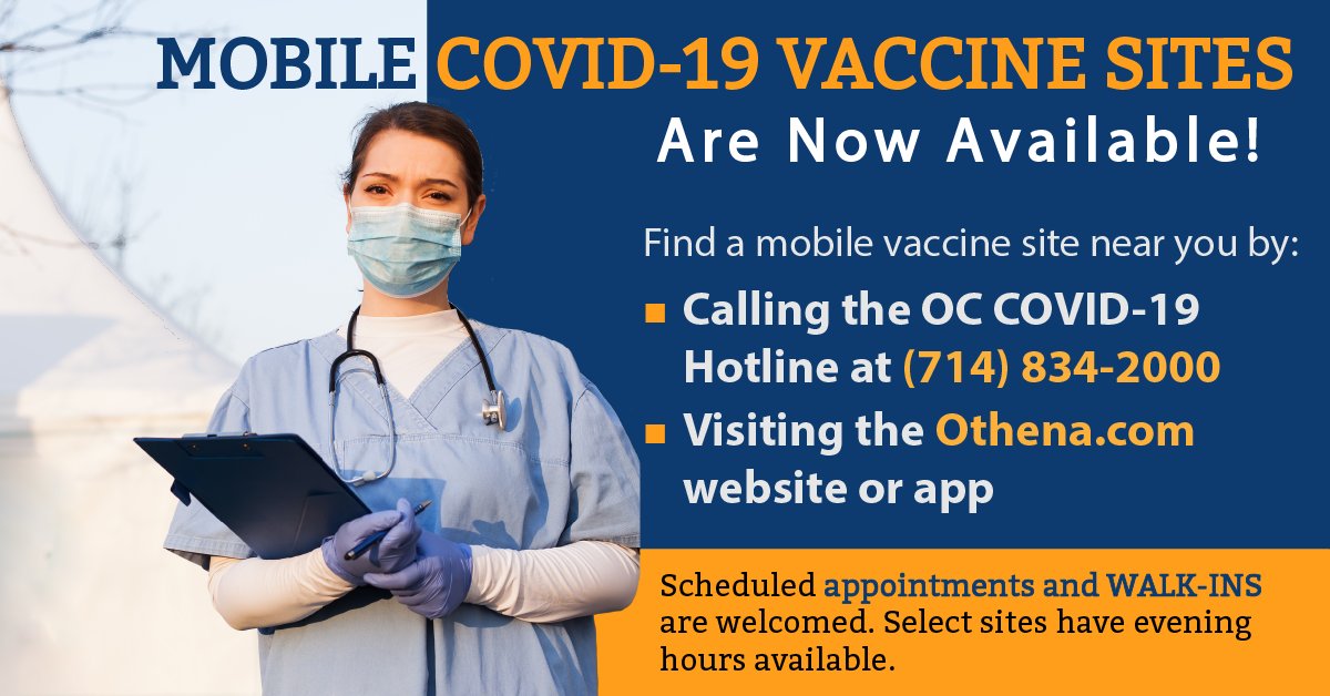 ! Mobile #OCCOVID19 clinics are scheduled countywide and appointments are available. We also accommodate walk-ins