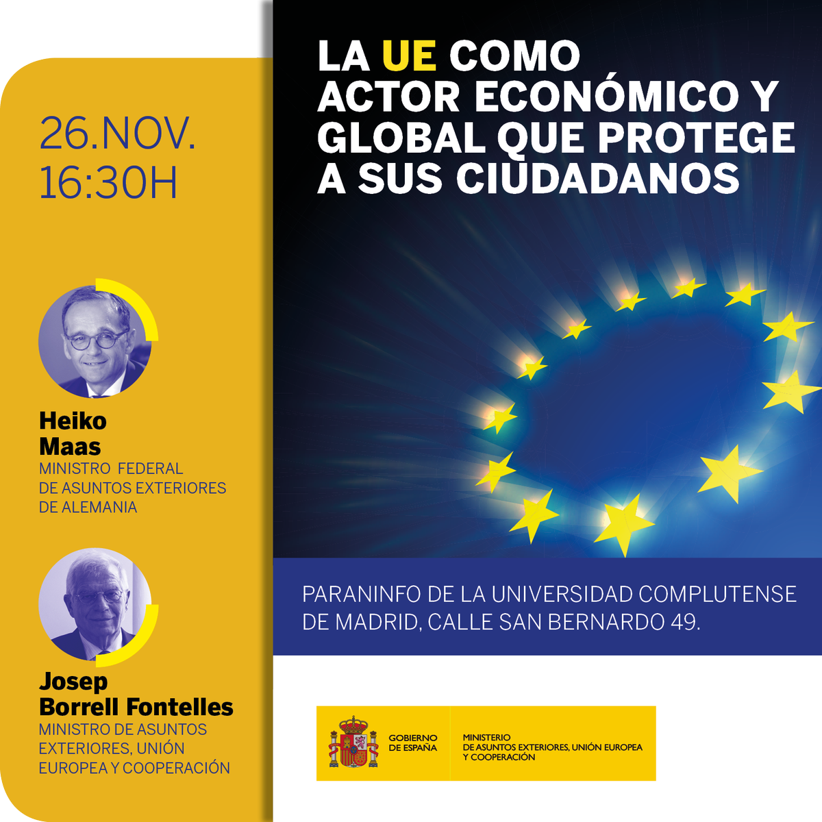 #Agenda | 26/11 a las 16.30: Debate Borrell-Maas "La #UE como actor económico y social que protege a sus ciudadanos"