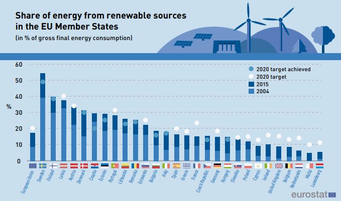 #USTrendsEurope | Esta es la proporción de energía procedente de fuentes renovables en los Estados miembros de la #UE según @EU_Eurostat. #CambioClimatico #EnergiasRenovables #Sostenibilidad