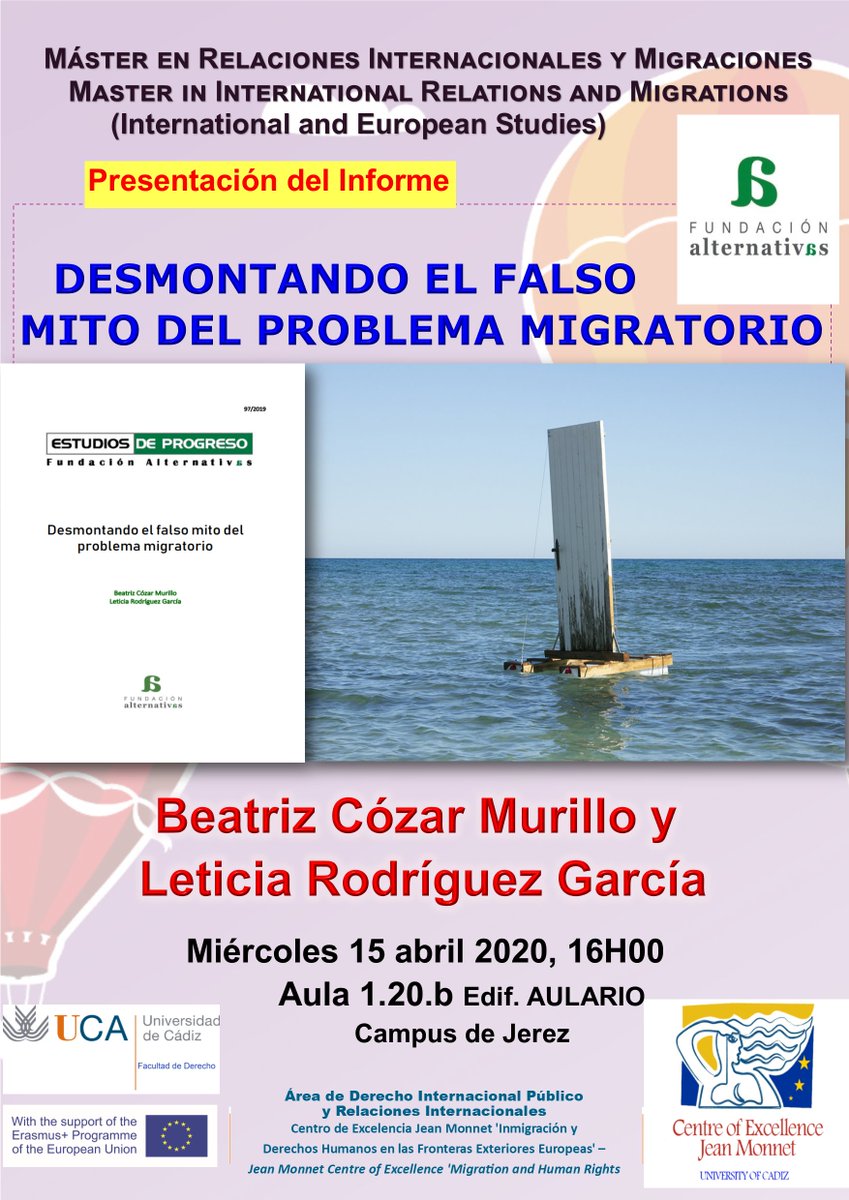 El próximo 15 de abril, Presentación del Informe: «DESMONTANDO EL FALSO MITO DEL PROBLEMA MIGRATORIO», en el que intervendrán Beatriz Cózar Murillo y Leticia Rodríguez García, investigadoras de la Fundación Alternativas y autoras del documento.