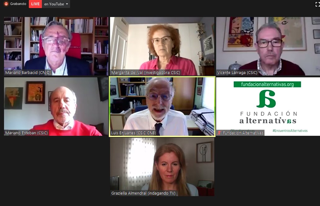 🎇¡COMENZAMOS! Hoy nos acompañan: ✨Luis Enjuanes ✨Vicente Larraga ✨Mariano Esteban ✨Margarita del Val 🎙️MODERA: nuestro patrono Mariano Barbacid INTERVIENE: @GraziellaAlm, @indagandoTV 📺 ¡Únete! 👉 https://bit.ly/VacunaCOVID-19  @CNB_CSIC l @CSIC l @CNIO_Cancer lpic.twitter.com/TSzibsqpWU