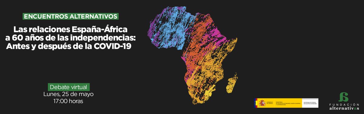 El #DíaDeÁfrica contamos contigo en el debate: 'Las relaciones España-África a 60 años de las independencias: Antes y después de la #COVID19' 📅 25 de mayo ⏰ 17:00 hora peninsular (CET) 📲 A través de este enlace 👉 https://bit.ly/África-España  Más ℹ️ 👉 https://bit.ly/3cWcrHn pic.twitter.com/oQ8SFTfjO1