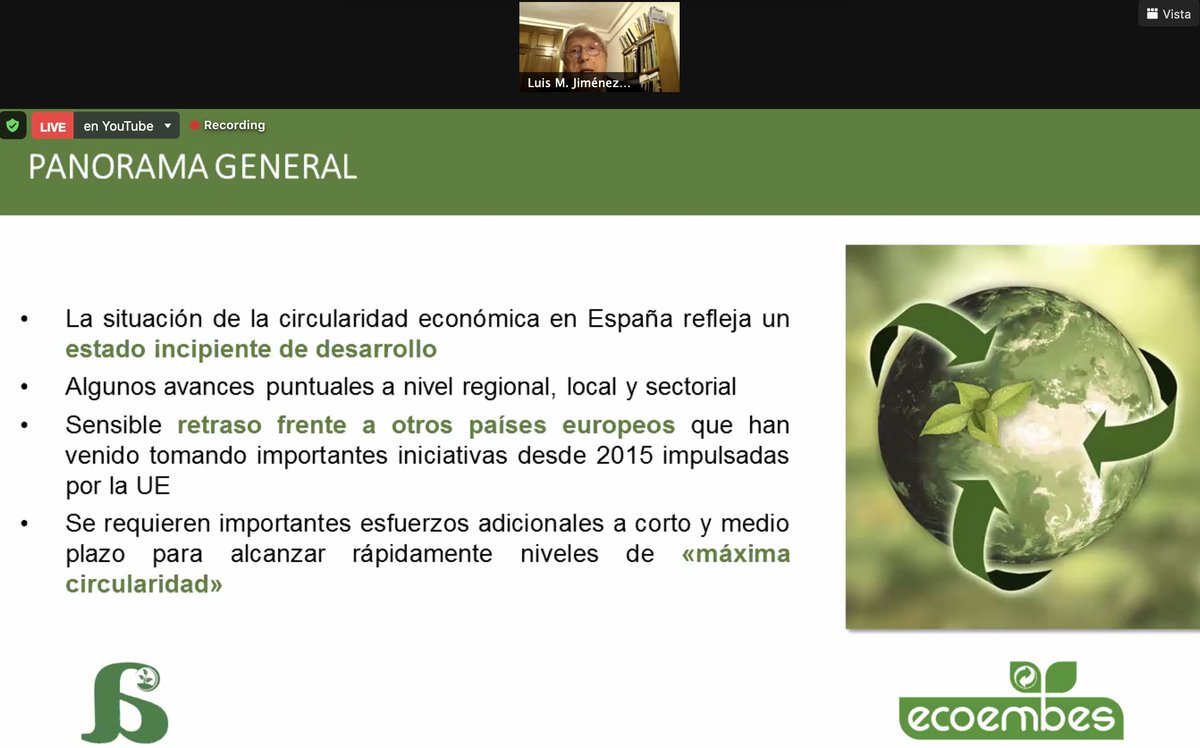 🗣️Luis M. Jiménez: "La economía lineal de ciclos abiertos hay que sustituirlo rápidamente por el modelo de economía circular, de ciclos cerrados, regido por el ciclo de vida y con la capacidad regeneradora” #EcoEspaña2020pic.twitter.com/yVFsdY8cfL