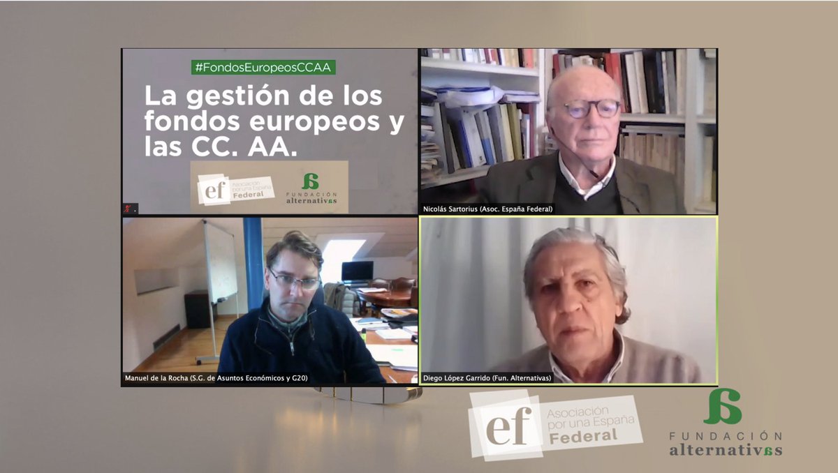 🔛 ¡Comienza el webinar: 'La gestión de los fondos europeos y las CC. AA.' 💶 #FondosEuropeosCCAA 👥 Participan: ✨@MdelaRochaV, secretario general de Asuntos Económicos y G20 ✨@DiegoLGarrido ✨Nicolás Sartorius ✨Y expertos/as 👉 En directo: https://bit.ly/Dir_FondosCCAA pic.twitter.com/oHijAdbFGs