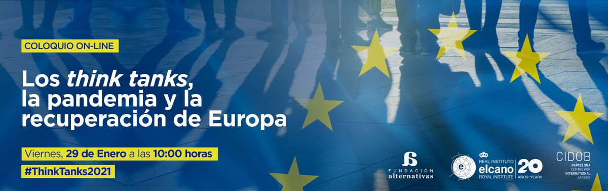 🔛 ¡Comenzamos el coloquio 'Los think tanks, la pandemia y la recuperación de Europa' 💭🌍 @rielcano @CidobBarcelona ¡Te esperamos!👏 👀 Para verlo en directo: https://bit.ly/Dir_ThinkTanks  ℹ️ Para más información: https://bit.ly/Act_ThinkTanks pic.twitter.com/r5ZoaqfeGr