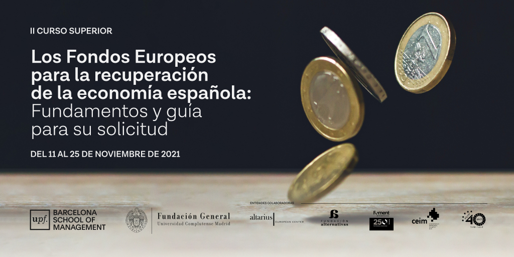 Apúntate al curso "Los Fondos Europeos para la recuperación de la economía española: fundamentos y guía para su solicitud", un curso práctico organizado junto a @UPFBarcelona
