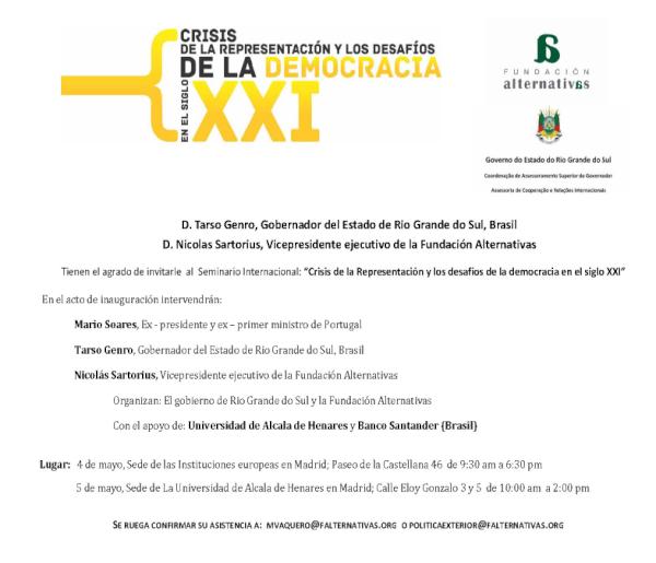 Mario Soares expresidente #Portugal participará en Seminario "Crisis de Representación .." inscripción gratuitapic.twitter.com/FCdeEv7b