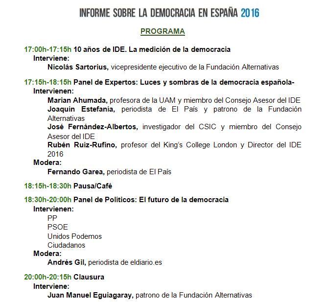 Presentación del nuevo Informe sobre #Democracia (#IDE2016) en @Congreso_Es