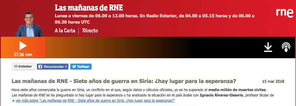 Siete años de guerra en #Siria: ¿hay lugar para la esperanza? Escucha la intervención de nuestro analista @IAlvarezOssorio en @LasMananas_rne @rne http://bit.ly/2HA78xk pic.twitter.com/yK4sQsa7mt
