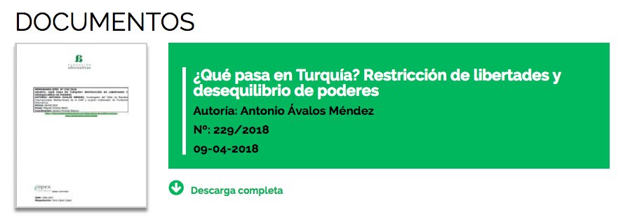 📌📄 No te pierdas el nuevo documento de #OPEX 🤔🇹🇷 ¿Qué pasa en Turquía? Restricción de libertades y desequilibrio de poderes ✍️ Antonio Ávalos Méndez 💼 Coordinación: @IAlvarezOssorio #OPEX #Magreb #Turquía #RRII 📥 Descárgalo libremente aquí: http://bit.ly/2qifYcE pic.twitter.com/6pz0LZaZl5