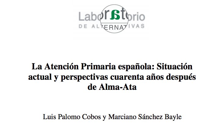 En el #DiaAtenciónPrimaria publicamos un nuevo documento sobre la situación actual de la #AtencionPrimaria española y las perspectivas de futuro #SanidadPública ✍️ Por Luis Palomo y Marciano Sánchez Bayle 📄📥 Descarga el documento aquí: http://bit.ly/2IMCjWF pic.twitter.com/UmQCCJJhjN