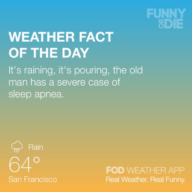 @funnyordie: Get the Funny Or Die Weather app! http://bit.ly/1860NYB pic.twitter.com/9uAJSzMXFs”@GavinRossdale haha OMG! This is awesome lol.