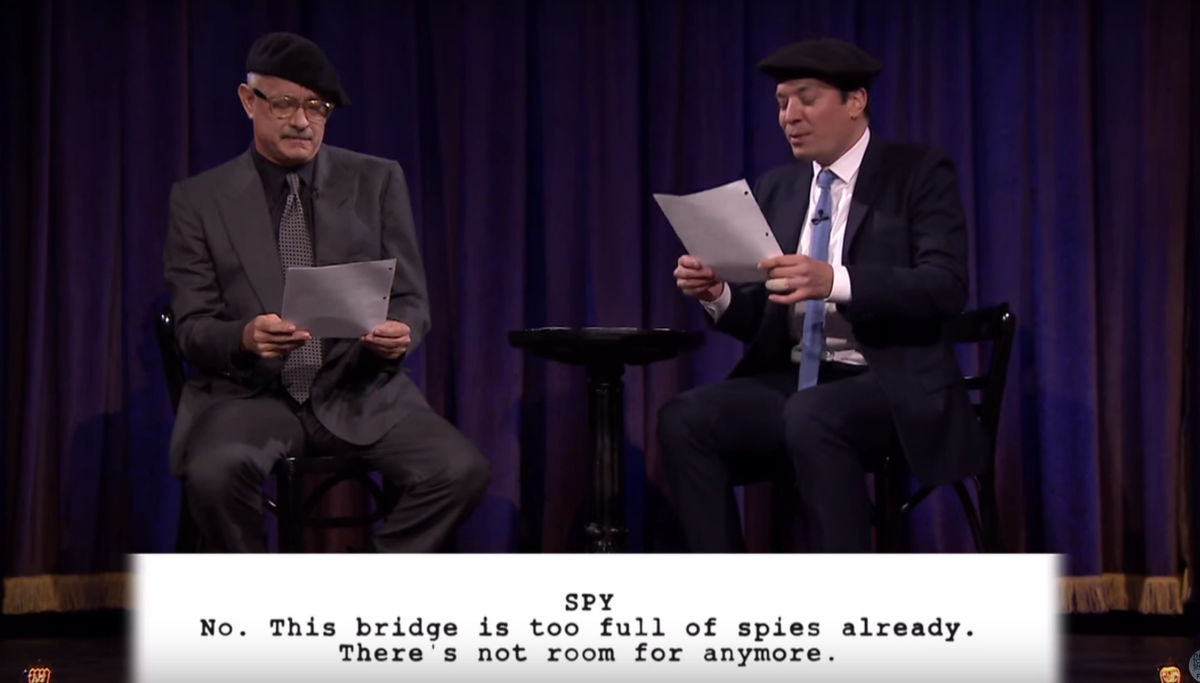 ICYMI: @TomHanks performs 'Bridge Of Spies' as written by kids http://bit.ly/1X9ntLC pic.twitter.com/za9u3wWDJj