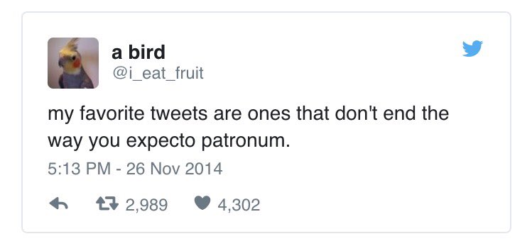 My favorite tweets are the ones that don't end the way you expecto patronum.