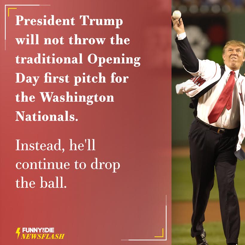 Trump is too busy, to throw out the ball. It's not because he's working, it's because his hands are too small.