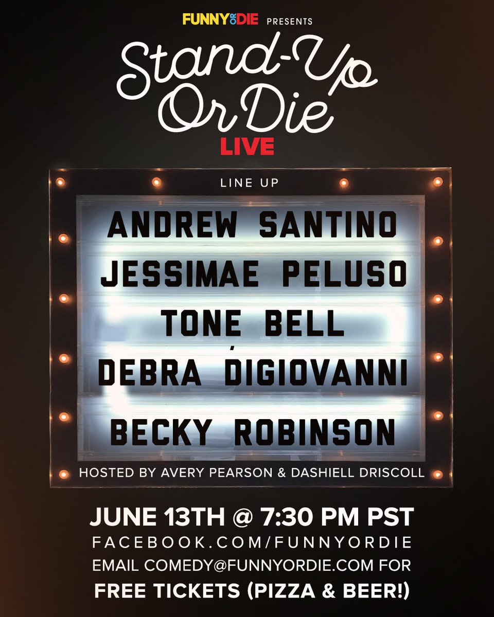 Join us for some free 🍕,🍻 & comedy June 13th at the FOD LA office! All u have to do is email Comedy@FunnyOrDie.com & we'll see u on Tuesdaypic.twitter.com/dFheQT41Bk