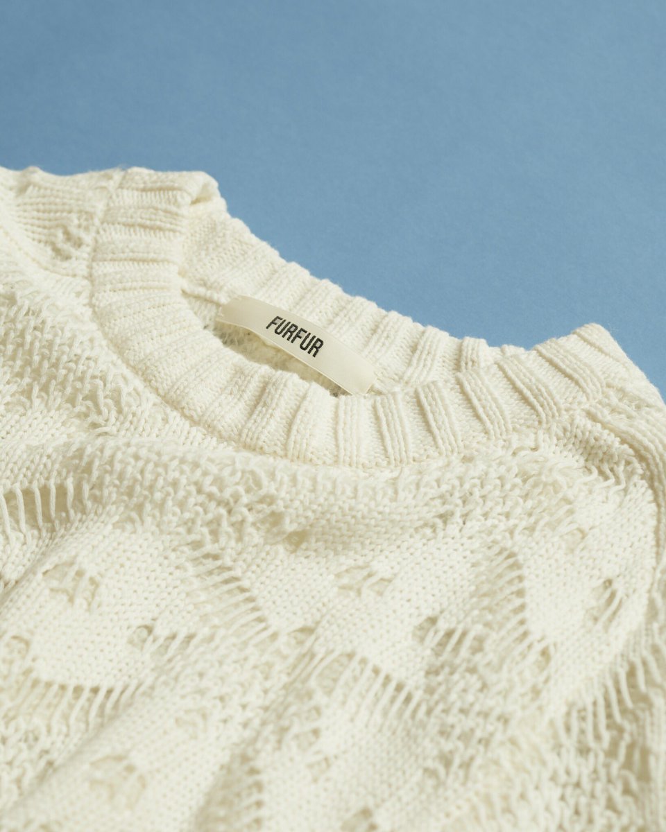 Issue.16 「Knit detail」 モーツァルトの表現する独創的なメロディが流れるようなコード刺繍を シアーなシフォン素材に乗せ、リブ部分はニットで仕立て、クレッシェンドを効かせたデザインセーター。 テープエンブロイダリーセーター 17,500yen+tax https://furfurfur.jp/Page/issue/16.aspx?plan=fu20181130knit …