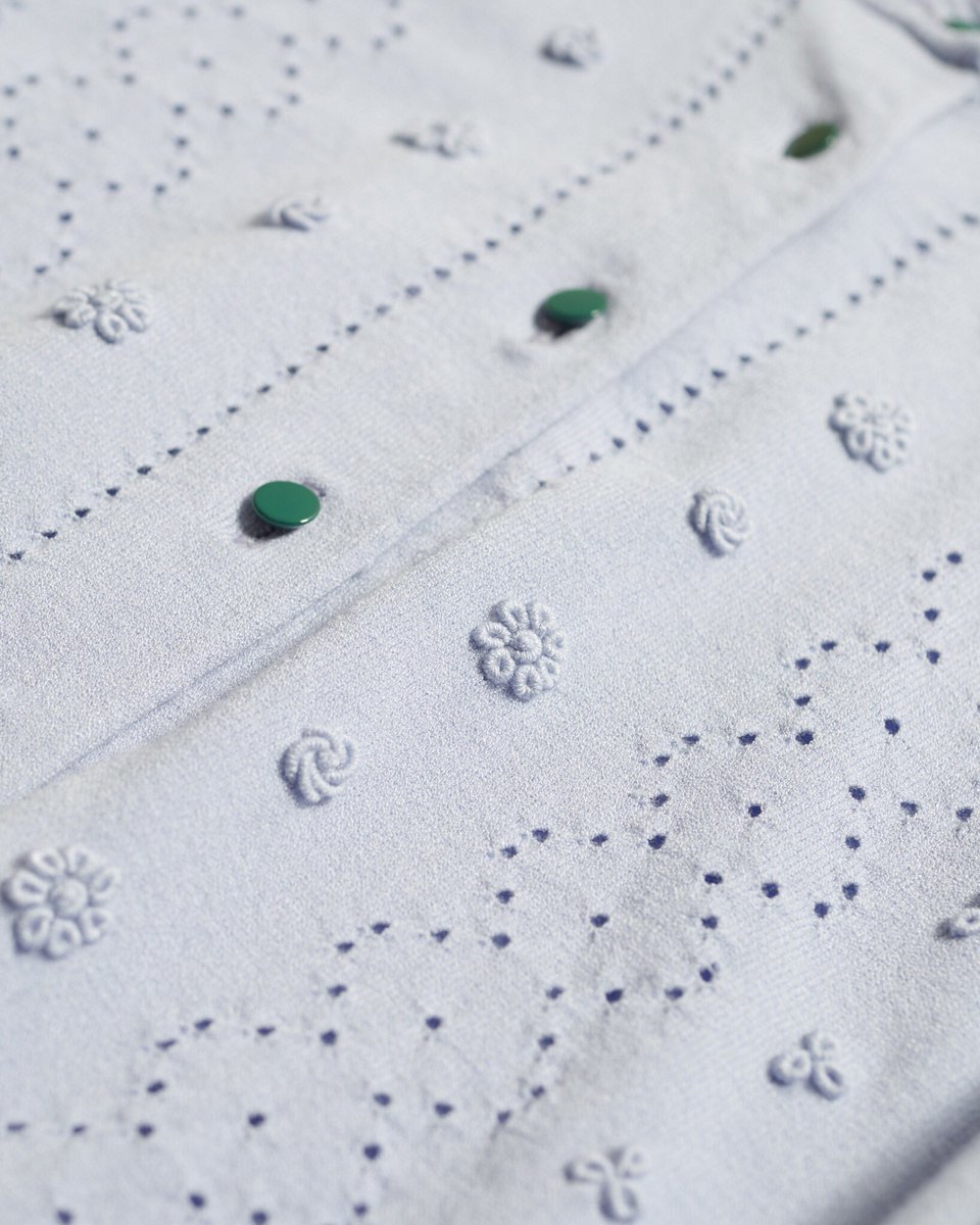 issue.16 Knit detail 繊細なリーフモチーフの透かし編みを施したモヘアのカーディガンをベースに、ノスタルジックな雪の結晶模様のテープ柄をジャガード編みで配してレトロな配色でボーダーに。 レーシージャガードカーディガン 19,000yen+tax https://furfurfur.jp/Page/issue/16.aspx?plan=fu20181130knit …