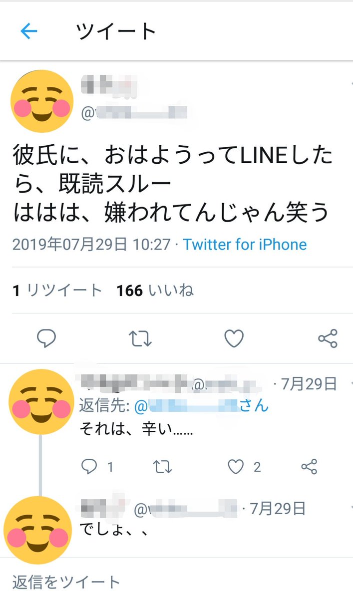 自分の意見を言いたい人は私のツイートにリプしないで自分の言葉でツイートしてね。読解力の低さを平気で露呈しているような人にいちいちリプ返してやるほど暇じゃないし、そんな親切にしてやる必要も感じません。二度と見たくないし関わりたくもないので、全部ブロックします。
