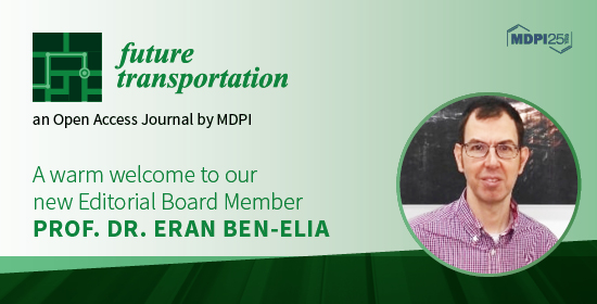 We warmly welcome Prof. Dr. Ouri E. Wolfson for the New Open Access Journal Future Transportation, and we look forward to the new journal achieving many milestones under his leadership. Further information about the journal can be found at https://www.mdpi.com/journal/futuretransp …