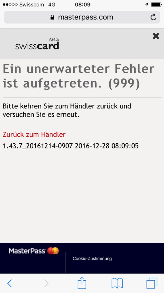 #swisscard#masterpass#mastercard#registration#fail nutze weiterhin Apple Pay...pic.twitter.com/lIawrGBUrZ