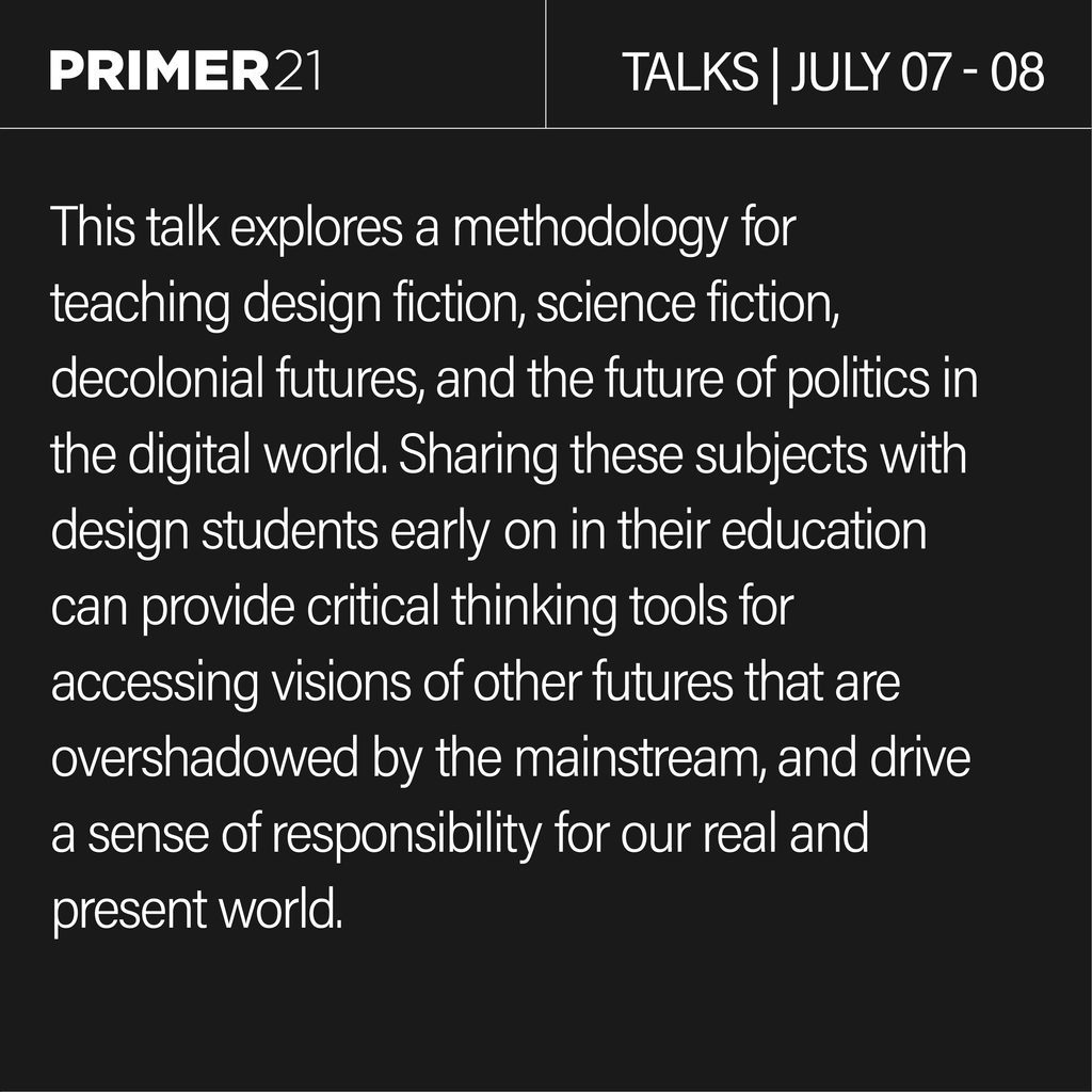 #PRIMER21 Talks | Sowing Electric Seeds: Teaching Scifi, Pop Culture & our Future in Brazil@umceuazul &@futures_bsb explore their methodology for teaching#designfiction,#scifi, decolonial futures & the future of politics in the digital world.
