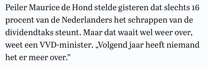 Het geheugen van een stemmer is maar 3 weken, dus wat let ze. En veel partijen in de 2e kamer steunt dit beleid (nu of later).