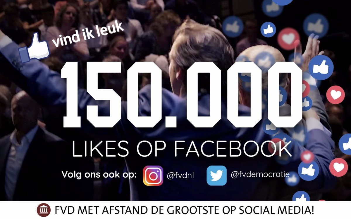 Vandaag ging FVD op Facebook door de grens van 150.000 likes. #FVD is de grootste online politieke beweging van NL. Blijf op de hoogte van alle onze nieuwe video's. Like ons op Facebook https://www.facebook.com/forumvoordemocratie … en volg ons op YouTube: https://www.youtube.com/forumdemocratie?subscribe=1 … #FVD150000likes #FVDpic.twitter.com/ltLzZlCcVA