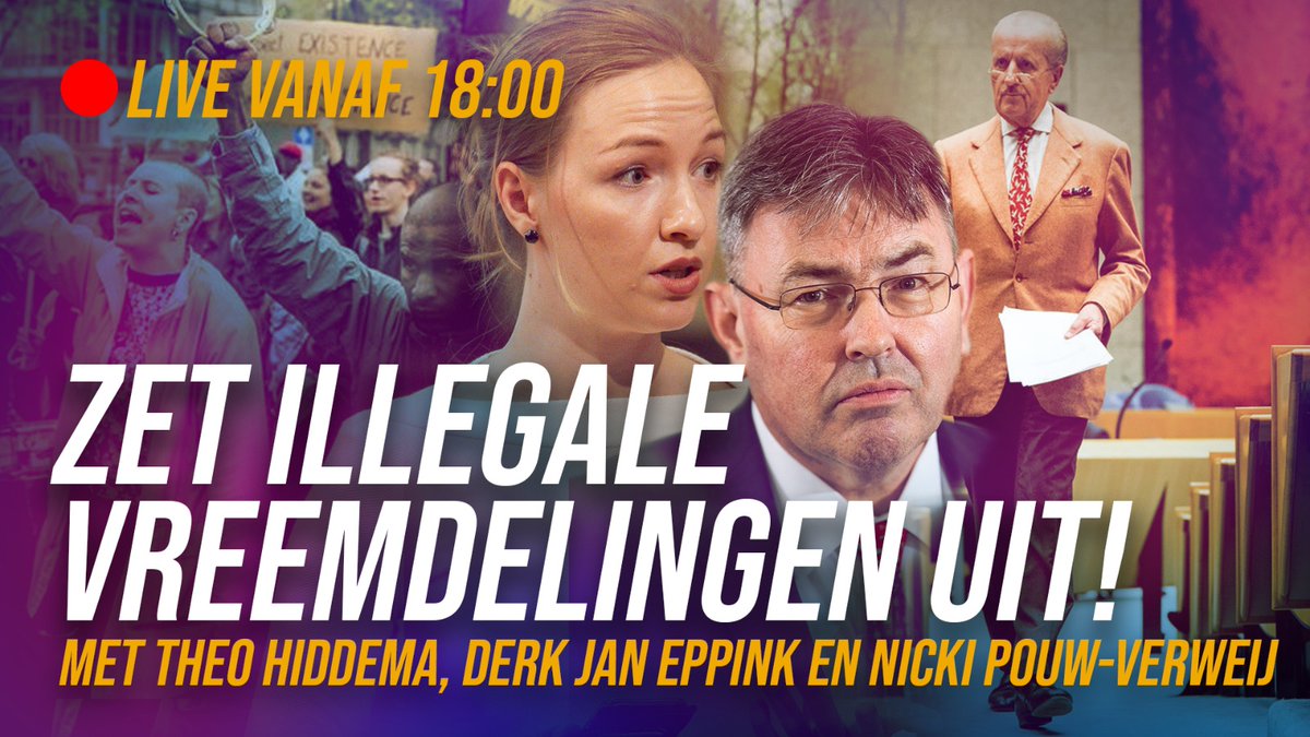 hier staat: Zet illegale vreemdelingen uit, mét Theo Hiddema, Derk Jan Eppink en Nicki Pouw, Verwey.