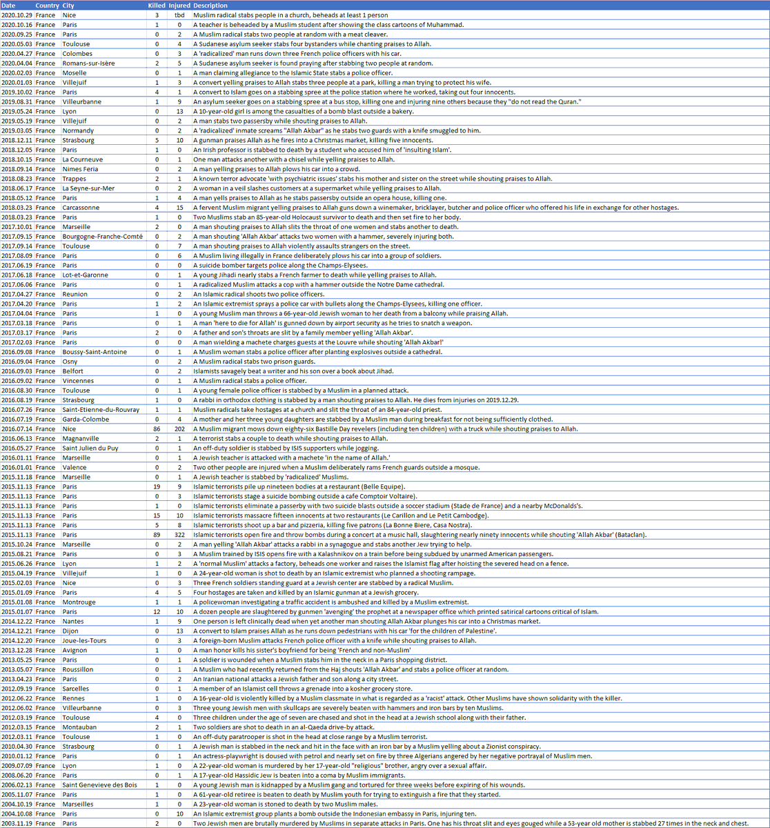 Vanaf 2003 tot nu zijn er in Frankrijk 86 aanslagen geweest met 286 doden gepleegd door islamitisch terreur!! Hoe veel mensen moeten er nog sterven voordat het probleem erkend wordt?? Ook in Nederland al 5 aanslagen op de teller...pic.twitter.com/Lj1djCUpTU