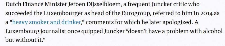 Toenemende speculatie in internationale pers over alcoholprobleem Juncker. http://linkis.com/www.politico.eu/arti/SgtCP …pic.twitter.com/6yRjmQg9a3