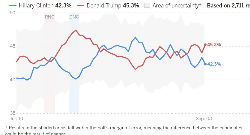 Donald Trump loopt uit op Hillary Clinton. Bron: http://www.latimes.com/politics/ pic.twitter.com/6L8UtRwkf2