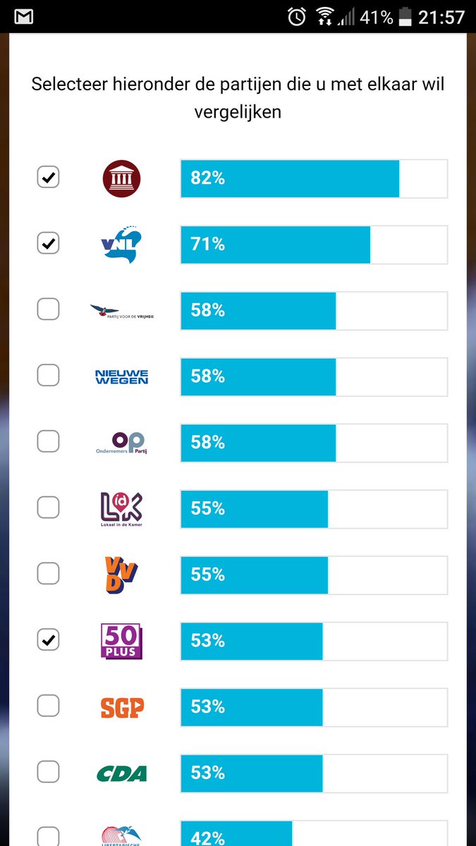 Tot mijn verbazing kwam ik uit op het FvD. Waarop ik sowieso ga stemmen, maar toch! Gezien de ophef