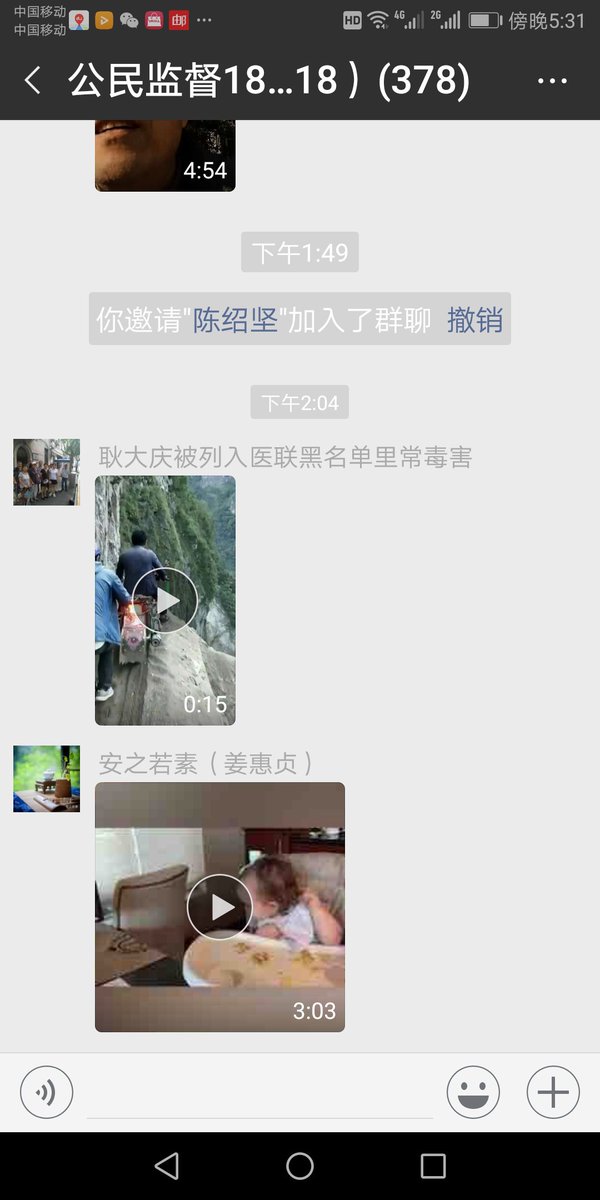 冯正虎主持的公民监督群于2018年12月21日下午第18次被封。该群十八世再生于12月20日,亡于12月21日,存活一天,群友人数378。http://www.fengzhenghu.net/?p=3783&preview=true …pic.twitter.com/nmQoDHabCv