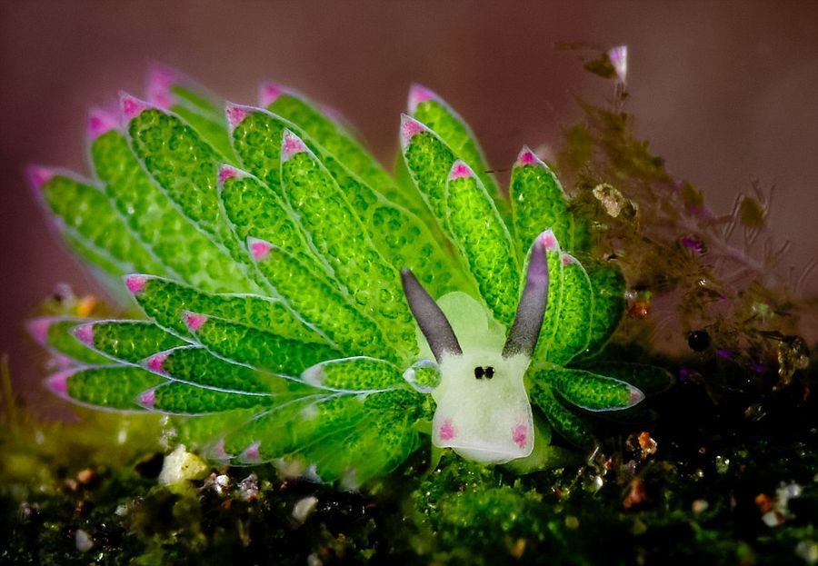 La Costasiella kuroshimae (nombre común: oveja hoja) es una babosa capaz de hacer la fotosíntesis por la asimilación de los cloroplastos de las algas que comen. A este fenómeno se le llama cleptoplastia.pic.twitter.com/KHLwaTU8vT